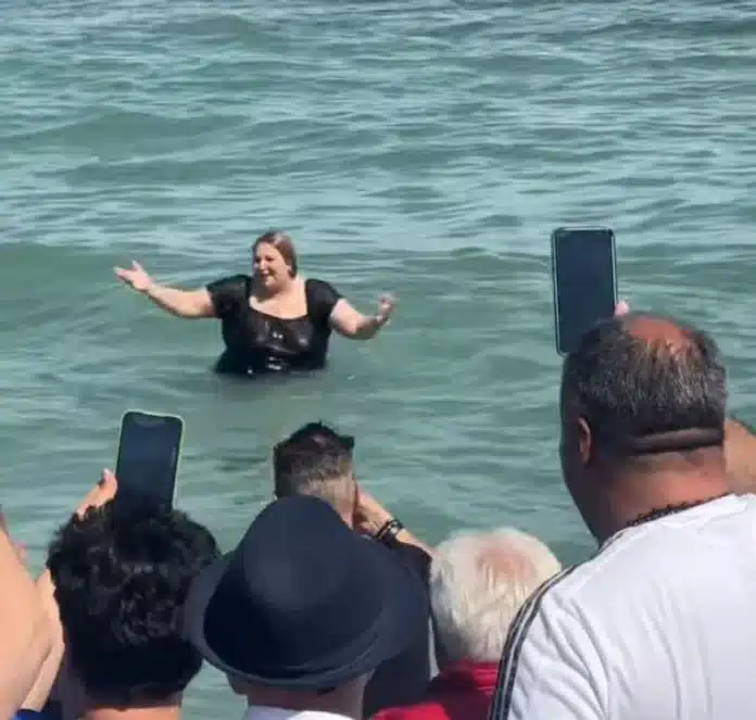 Distracția a continuat apoi pe plajă, unde Diana Șoșoacă a dansat alături de turiști, nu doar hore tradiționale, ci și pe melodii ritmate, moderne, atrăgând privirile și telefoanele celor din jur.