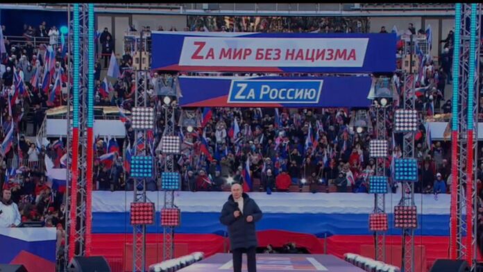 Discurs incredibil al lui Vladimir Putin pe stadion, la sărbătorirea anexării Crimeii. În timp ce zeci de copii și sute de civili au murit în Ucraina în urma invaziei ruse, Vladimir Public s-a adresat public rușilor și a vorbit despre credința poporului rus și despre Biblie.