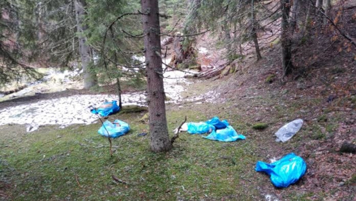 Câini morți în saci de plastic, abandonați într-o râpă din Retezat. Polițiștii au numărat 27 de cadavre