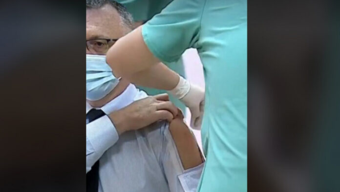 Cămașa lui Sorin Cîmpeanu, moment unic la vaccinarea miniștrilor. Cum arată „buzunărașul” pentru vaccinare