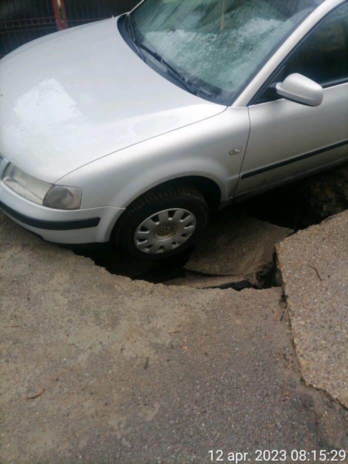 Mașină înghițită de o groapă, la Iași. Ce s-a întâmplat peste noapte, în parcare